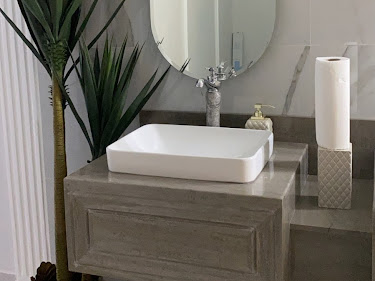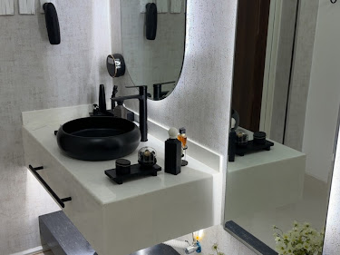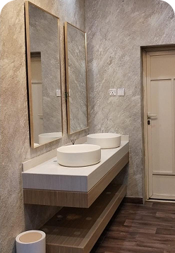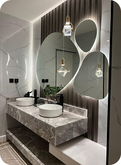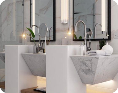 تشكيلات تُنفّذ من نفس خامة المغسلة أو المشروع لإعطاء تناغم بصري