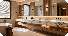 ومع مرور السنوات وتنوع المشاريع، أصبحت أعمالنا امتدادًا لفلسفة تعتمد على دقة التشطيب، ومعرفة دقيقة بخواص كل خامة، وقدرة على اختيار الشكل الذي يعبر عن روح التصميم.