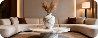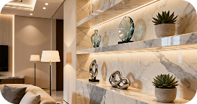 تصميم وصناعة رفوف وقطع ديكور رخامية تتكامل مع طابع المشروع