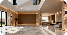 تنفيذ ديكورات حجرية ورخامية داخلية وخارجية بمستوى تشطيب متقدم