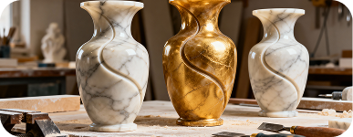 تشكيل ومعالجة الرخام الطبيعي والصناعي بدقة تبرز ملامح كل خامة