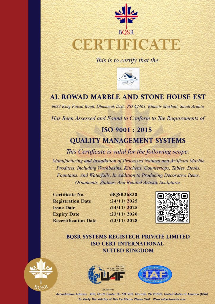 في بيت الروّاد، يتحول الرخام إلى لغة تعكس شخصية المكان، ويصبح كل تصميم جزءًا من هوية تعيش طويلًا. نعمل بروح الحرفة، ونراجع كل تفصيلة كما لو أنها القطعة الأهم في المشروع، لنقدّم عملاً يحمل قيمته في الشكل والمتانة والذوق.